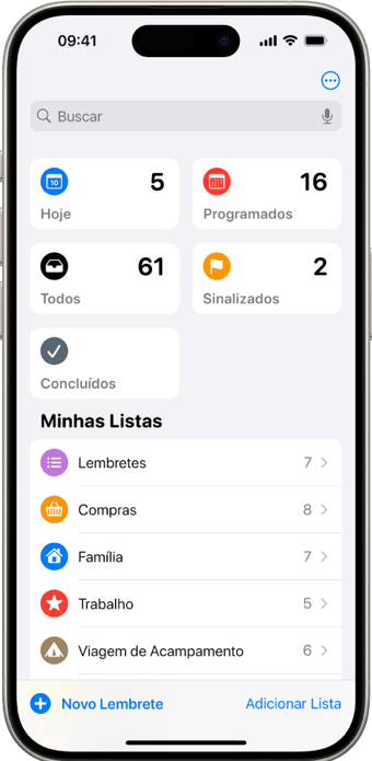 Abra o app “Lembretes”
